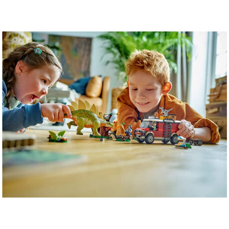 Creative dinosaur adventures await fans aged 6+ in this Dinosaur Missions: Stegosaurus Discovery (76965) set, a cool present full of role-play fun. After building the LEGO® Jurassic World dinosaur playset, kids get to create endless stories using the molded Stegosaurus toy figure with movable legs, a small Velociraptor toy figure and Ben and Sammy minifigures. There’s also a tree with a lookout and 2 detachable sections, plus an off-road vehicle with a 2-minifigure cab, removable roof, opening back, movable bed and multiple storage areas for small story starter elements. Also included is a small connectable trailer with a movable satellite dish, microscope and screens, plus much more.