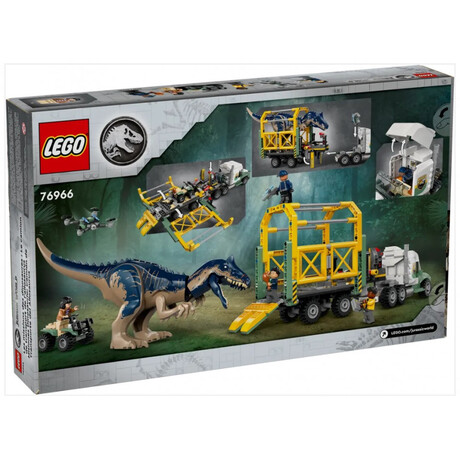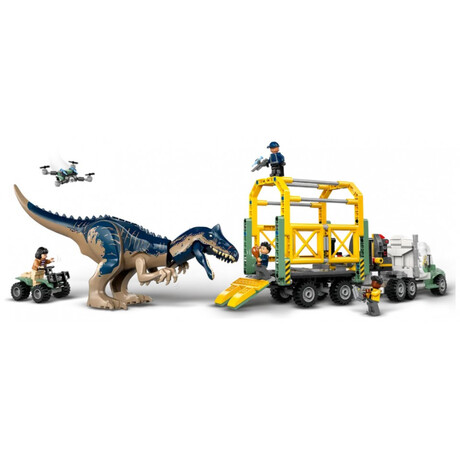 - Movable Allosaurus figure – Features a molded dinosaur toy set with movable arms, legs, head and opening jaw, plus Darius, Kenji, Yaz and guard/driver minifigures to kick-start role play and stories