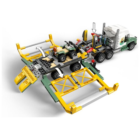 - Adventure playset – Vehicle-loving kids will enjoy this Jurassic World adventure toy, with a semi-truck that has a LEGO® dinosaur cage trailer with lowering ramp and walls, a quad bike and more