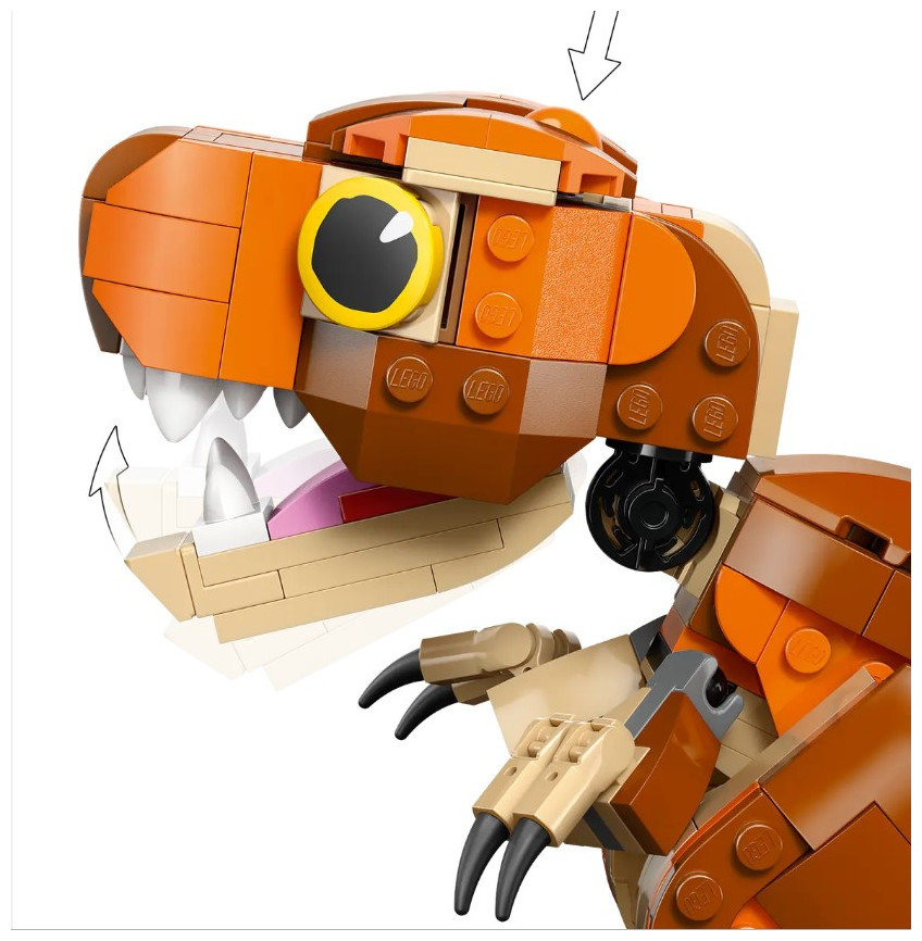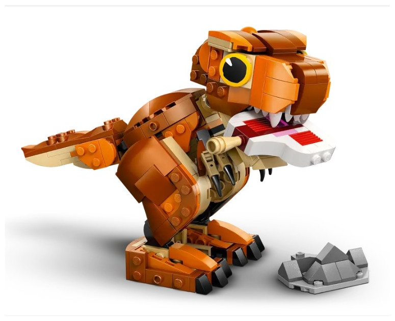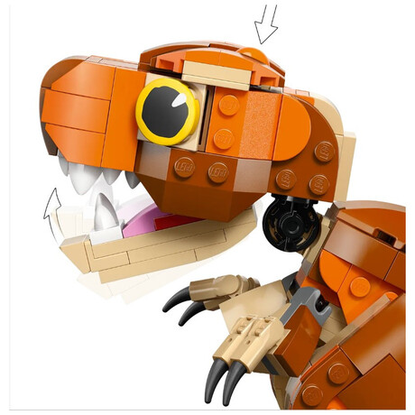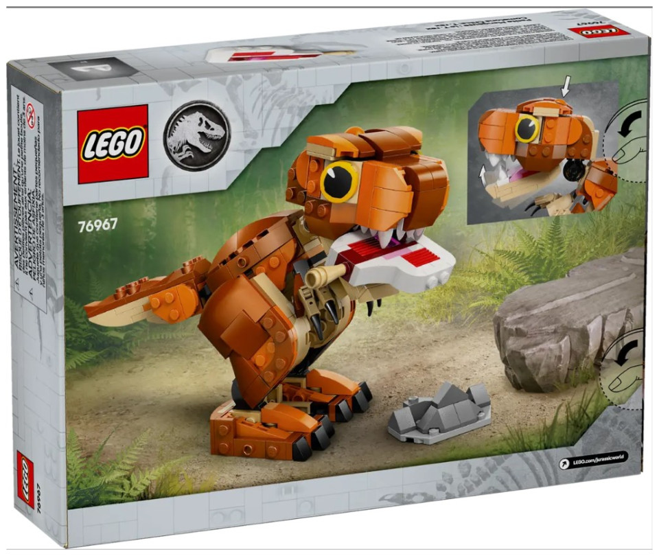 Exciting adventures, nurturing and care-play await young dinosaur fans aged 7 and up in this Little Eatie: T. rex (76967) LEGO® Jurassic World dinosaur toy model full of play-and-display possibilities. First, young dinosaur-tenders can assemble this LEGO dinosaur building kit, before diving into play as they explore the prehistoric world with Little Eatie from Jurassic World: Camp Cretaceous. This Jurassic World: Chaos Theory toy set features a brick-built T. rex figure with an interactive chomping jaw and movable tail and limbs that allow for different poses. Once play is over, the dinosaur toy for boys, girls and fans can be displayed on a shelf or desk.