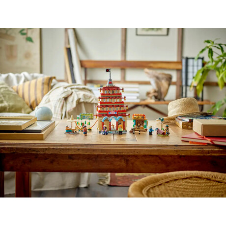 The building set comes with minifigures of Luffy – who comes with arm-lengthening pieces – Nami, Usopp, Arlong and Chu. Kids can collapse the pagoda model during battle by tapping it firmly on top, and the shooting gallery has fun targets for kids to aim at with stud-shooters. Villainous Arlong can be placed on a throne inside the shark attack building. Chu can get a drink at the shack, and the forest contains an iconic ketchup bottle. This playset also contains stud-shooters and accessories, including 3 'Wanted' posters. For added digital fun, builders can zoom in, rotate models in 3D and track their progress using the intuitive LEGO Builder app. Set contains 926 pieces.