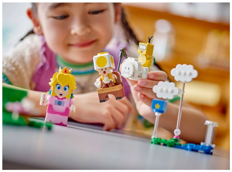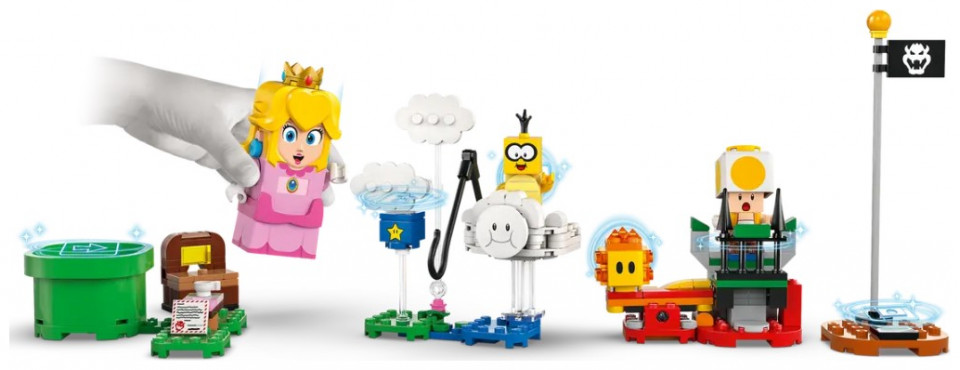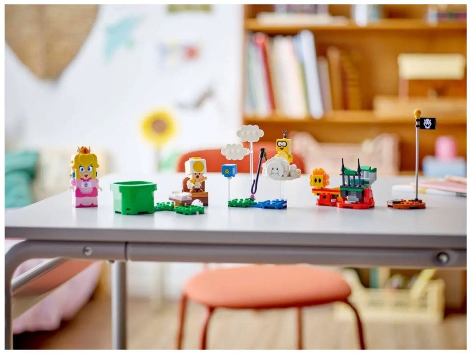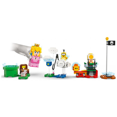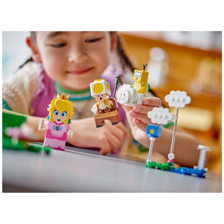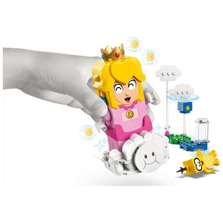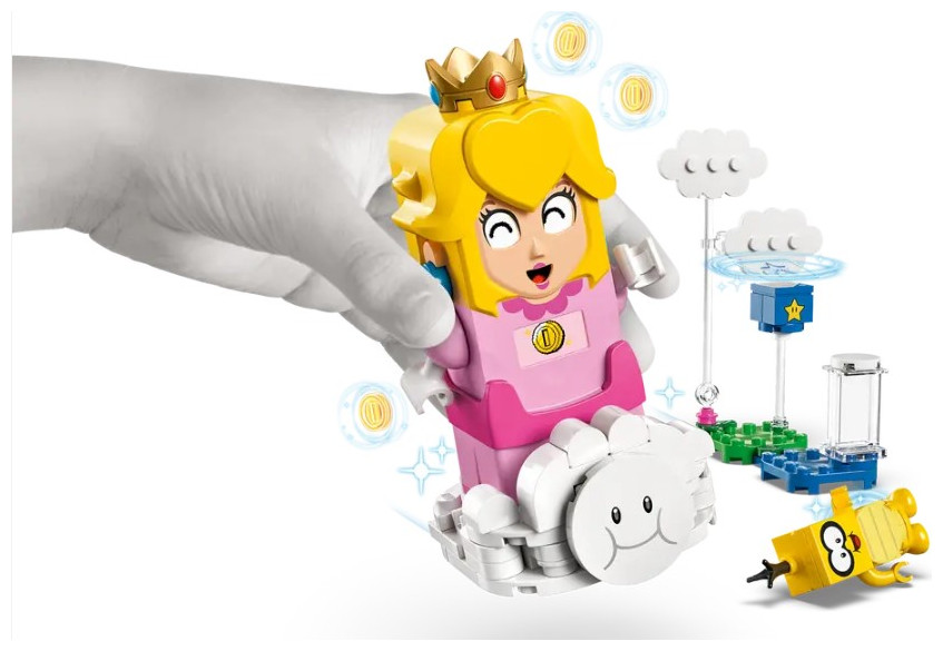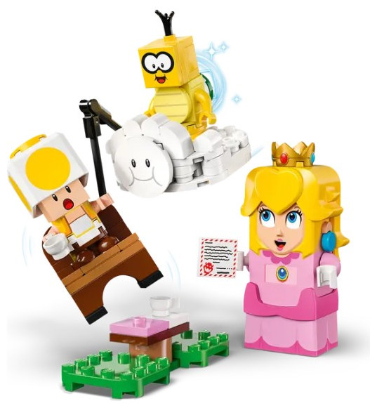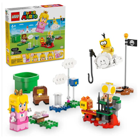 Join an iconic Super Mario™ character for a picnic and fly on a cloud to rescue the Yellow Toad with the Adventures with Interactive LEGO® Peach™ princess toy playset for kids (71441). A top Nintendo® gift for girls, boys and gamers aged 6 and up,the set features an interactive LEGO Peach figure, plus Lakitu, a Yellow Toad and a Lava Bubble. Travel from the Start Pipe to the Goal Pole triggering digital reactions from LEGO Peach and collecting coins along the way. Have a picnic, read a letter saying that the Yellow Toad has been captured, topple Lakitu from the cloud, and fly, flip and loop the loop on the cloud on the way to rescue the Yellow Toad. The buildable cloud toy also has a fishing pole for Lakitu to lift the Yellow Toad’s picnic seat.