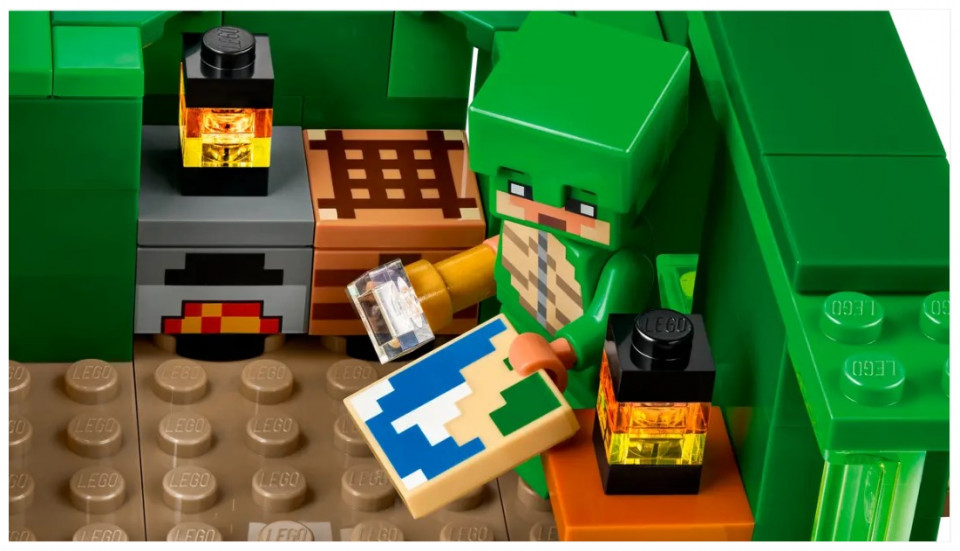Players build a turtle-shaped Minecraft house with windows, lanterns, a door, bed, table, crafting table and a furnace. A lift-off roof gives easy access to the interior. Outside, there’s a beach area with sugar cane, turtle eggs and a bamboo raft with oars. There are familiar Minecraft figures and mobs: a Turtle Skin Warrior in a turtle skin and helmet, a Drowned with a trident, a Turtle nibbling seagrass and 3 baby turtles. Other accessories in this toy for gamers include a spyglass and a map. Fans of gaming action, creative construction and animal care will love this versatile toy. For extra digital fun, the LEGO Builder app allows builders to zoom in, rotate models in 3D and track their progress.