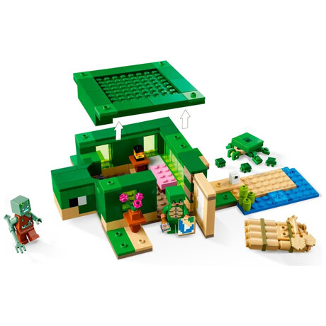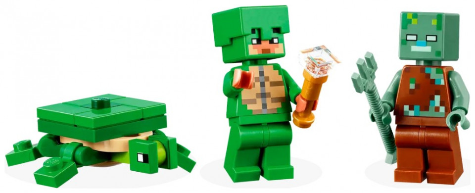 - Animal-care toy for gamers – This LEGO® Minecraft® toy includes a buildable Minecraft house with 3 Minecraft figures: a Turtle Skin Warrior, Turtle and a Drowned