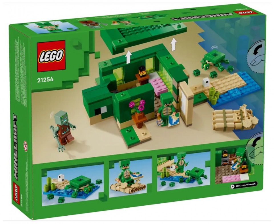 This model house shaped like a Minecraft® turtle is packed inside and out with Minecraft action and animal fun. With 3 iconic characters and a cool structure to build, the LEGO® Minecraft The Turtle Beach House (21254) set is a great gift idea for kids and Minecraft players aged 8 and up.