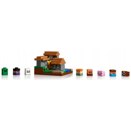 - Build-and-display Minecraft® model – 5 mini builds and 8 microfigures (Steve, Alex, a skeleton, witch, Creeper™, villager, cow and a pig) detach from the model for multiple display possibilities