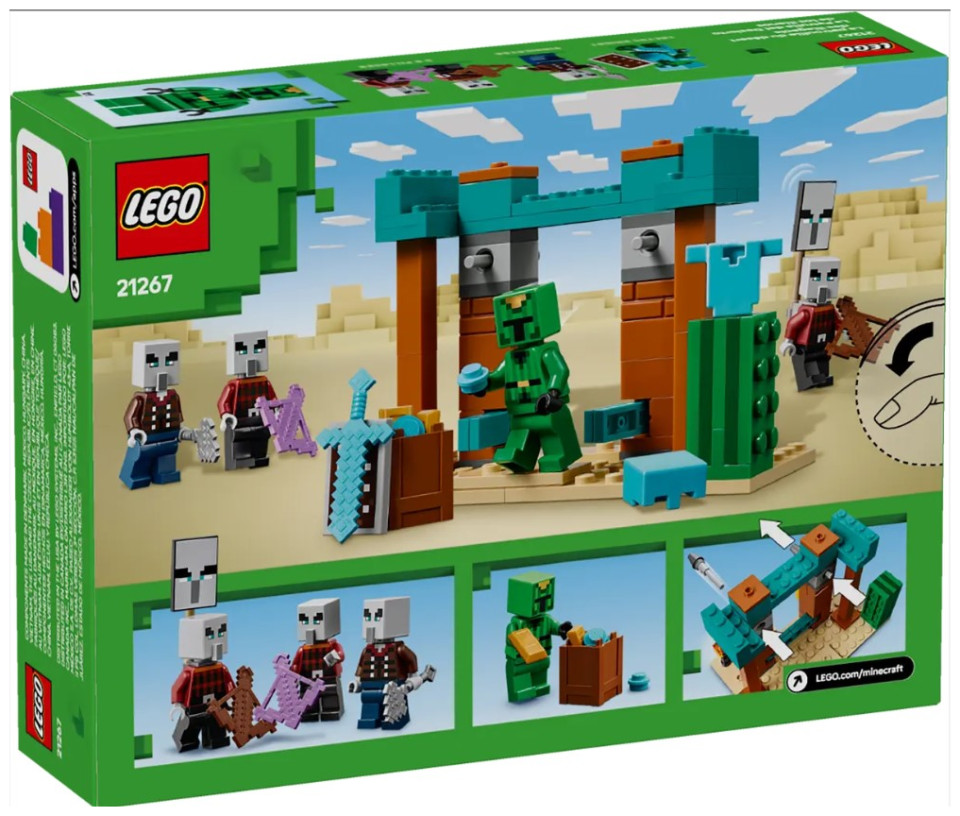 There’s big fun for Minecraft® players in this small LEGO® set for kids aged 7 and up. With 4 LEGO Minecraft figures, fun features and authentic accessories, The Illager Desert Patrol (21267) is a mini toy with mega Minecraft action.