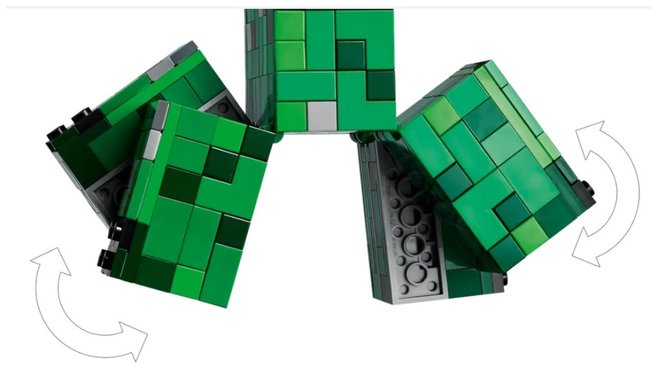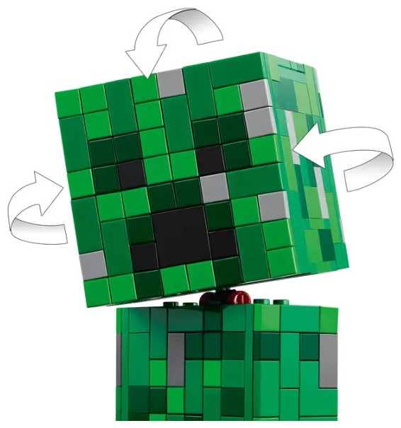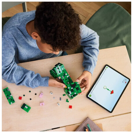 This buildable toy recreation of Minecraft’s iconic Creeper stands over 21 cm (8 in.) tall. It has 4 movable legs and a posable head that moves from side to side and tilts up and down. The front of the LEGO Minecraft Creeper figure’s head detaches to reveal an interior space containing a first-version Creeper and a TNT element. For added digital fun, builders can use the intuitive LEGO Builder app to zoom in, rotate models in 3D and track their progress. Contains 665 pieces.