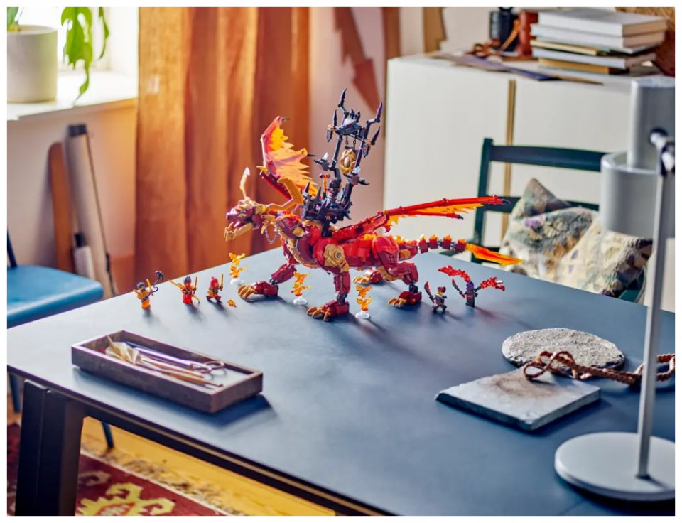 - Measurements – This 1,716-piece LEGO® set includes a large dragon toy that measures over 15 in. (39 cm) high, 24.5 in. (63 cm) long and 29 in. (74 cm) wide when its wings are spread