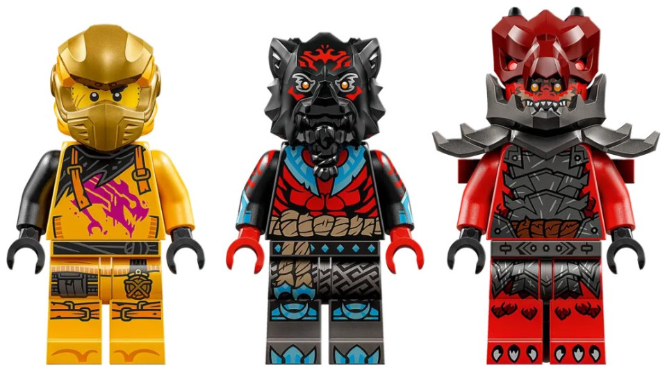 • 3 NINJAGO® minifigures – This playset features Arin with a crystal katana sword accessory, Ras with a golden hammer accessory, a Dragonian Warrior, plus a mini dragon critter model