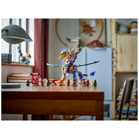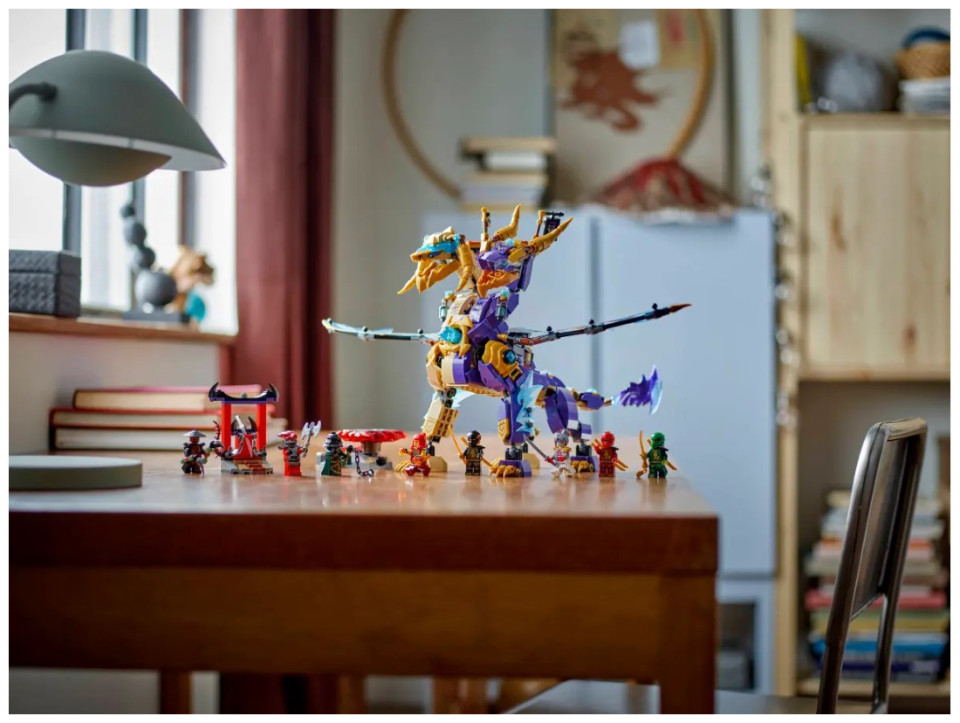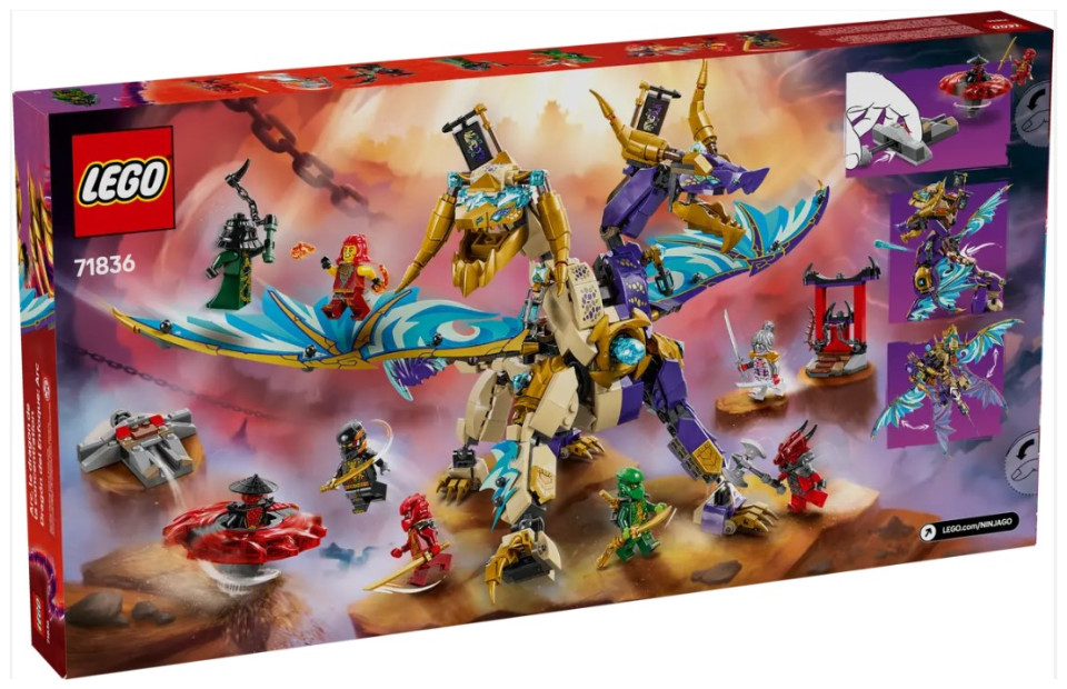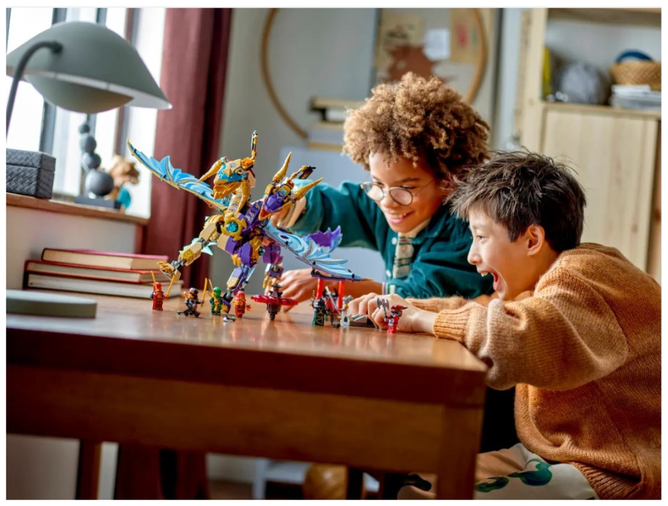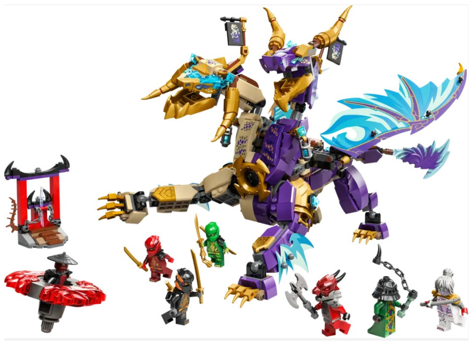 Interactive NINJAGO® dragon – Kids can activate a shooter in the dragon’s chest and move its large foil wings back and forth using a lever on its back