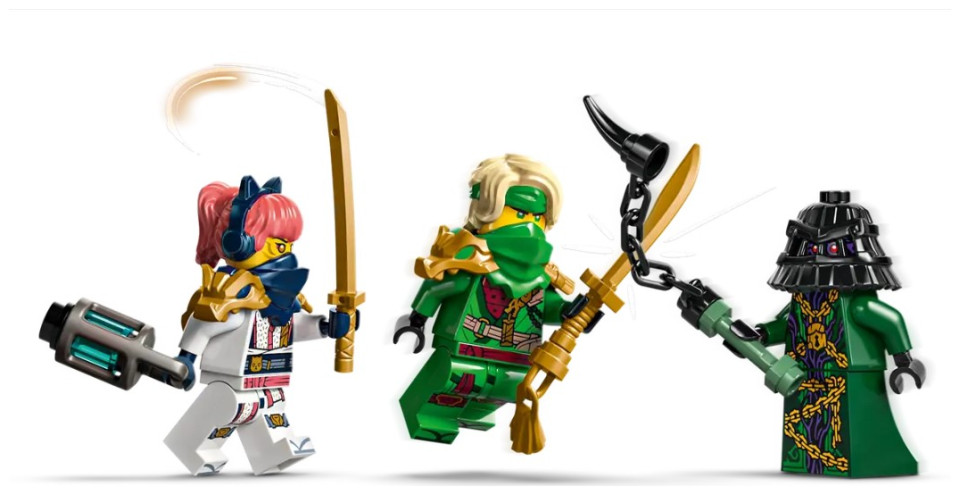 • 4 NINJAGO® minifigures – This LEGO® building set comes with ninja warriors Sora, Wyldfyre, Lloyd and the villainous Zarkt with ninja weapon accessories for kids to play out good vs. evil battles