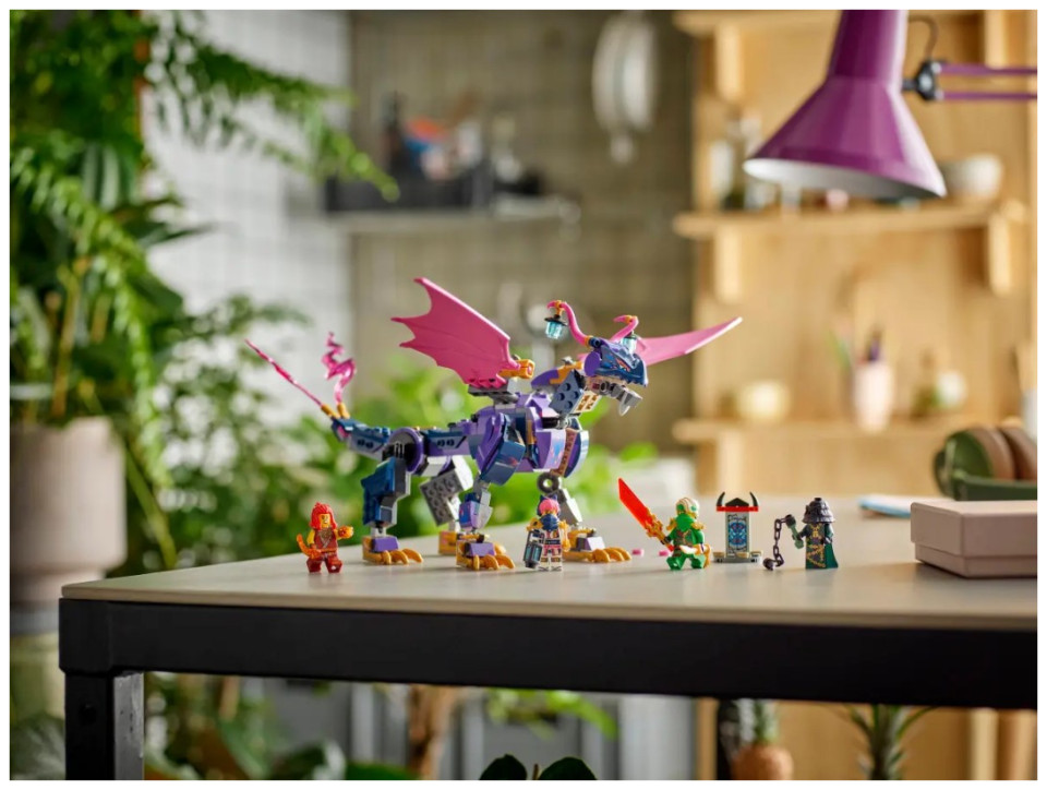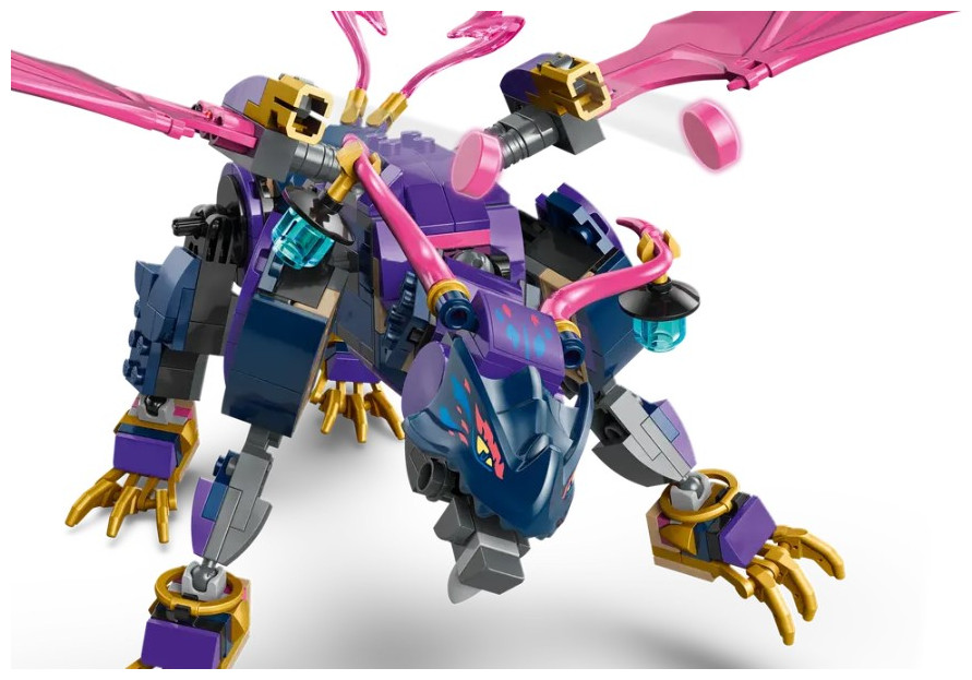 • Highly posable dragon figure – This large dragon model features a posable tail, legs, wings, head and jaw, 2 positions on its back for a minifigure, plus a stud shooter under each wing