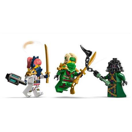 4 NINJAGO minifigures are included in the LEGO playset: ninja warriors Lloyd, Sora and Wyldfyre, each with a ninja weapon accessory, plus Master of Misfortune, Zarkt, for kids to play out epic good vs. evil battles. There is also a brick-built mini shrine with a secret message that Lloyd reveals with his translucent reveal blade accessory.