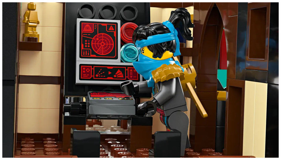This interactive adventure playset includes everything ninja fans need to recreate stories from season 3 of the NINJAGO Dragons RisingTV show: a gear to open and close the sails, removable roofs and floors to gain access to the ship’s interior, which includes a sushi bar and a table in the main cabin that can be folded up to reveal a secret computer.