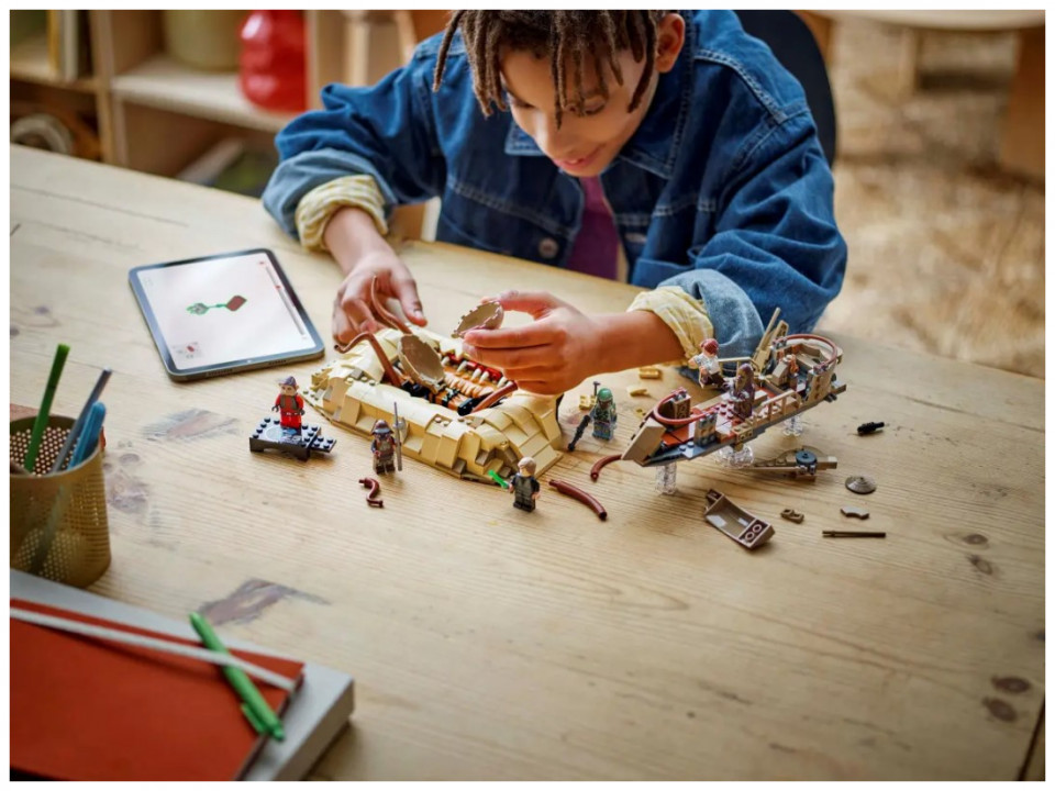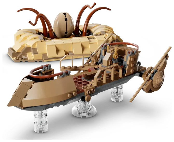 • Buildable LEGO® Star Wars™ toy vehicle – The desert skiff features translucent elements for a hover effect, a plank for Luke Skywalker to walk and the breakaway railing where Han Solo nearly fell off