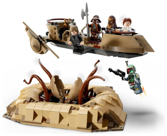 • Sarlacc pit – Features levers to move Sarlacc’s tentacles and Sarlacc’s mouth opens and has space for a LEGO® minifigure inside