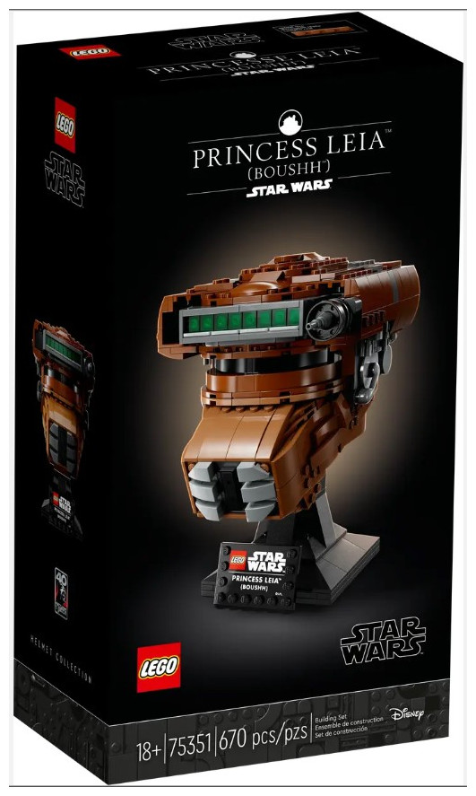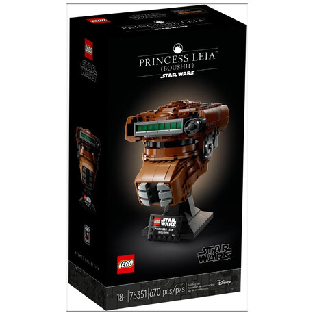 Pay homage to a legendary character with this LEGO® Star Wars™ Princess Leia (Boushh) Helmet (75351) build-and-display model for adults. Channel your creative Force to recreate the bounty hunter helmet worn by Princess Leia as a disguise to enter Jabba the Hutt’s palace in Star Wars: Return of the Jedi. A buildable stand with a nameplate completes an admirable centrepiece.