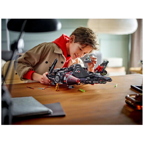 Turn the LEGO® Star Wars™ universe upside down with The Dark Falcon buildable toy vehicle set for kids (75389), which features a dark version of the Millennium Falcon, as seen in the LEGO Star Wars: Rebuild the Galaxy Disney+ special. A thrilling birthday gift for boys, girls and any fans aged 10 and up, this LEGO Star Wars brick-built starship toy has flip-up panels for easy access to the detailed interior, including Darth Jar Jar’s throne, the command center, hyperdrive, entertainment area and jail cell. Spring-loaded shooters, rotating cannons and a removable gunner post add to the action-play possibilities.