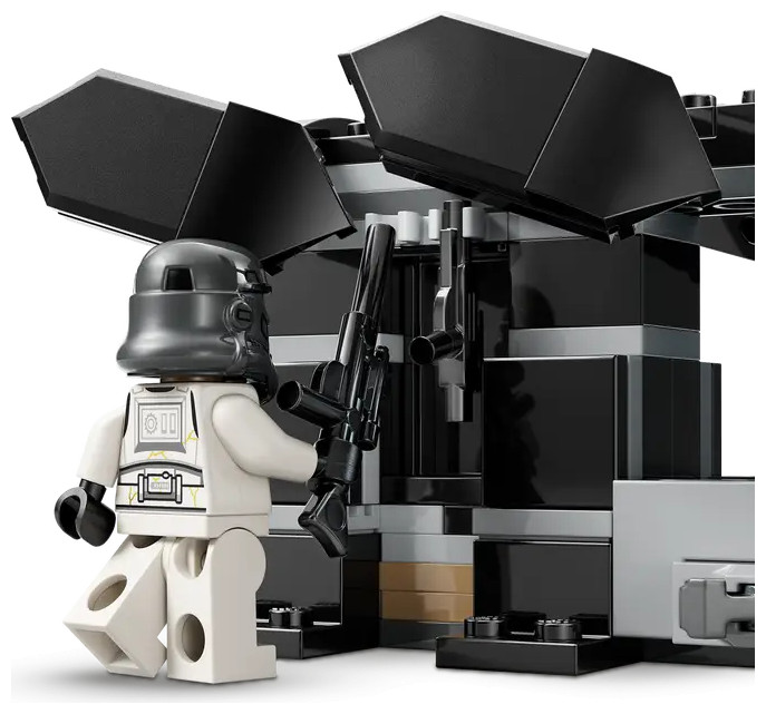 • Stow the LEGO® Star Wars™ blasters – Clip the troopers’ blasters next to them in the back of the dropship, ready for pretend-play battles