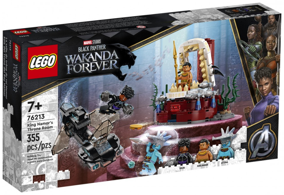 Imaginative underwater action awaits young Super Heroes aged 7 and up in the LEGO® Marvel King Namor’s Throne Room (76213) set.