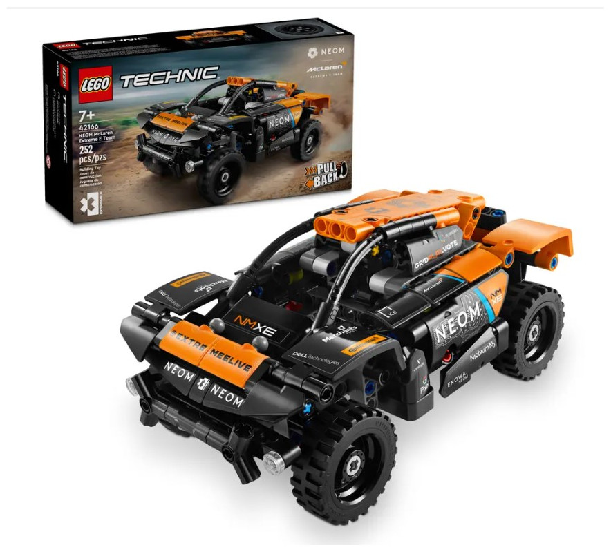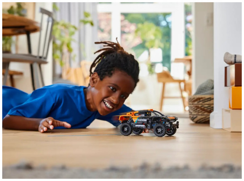 Looking for an exciting gift for kids who love race car toys? This pull-back car for boys and girls aged 7+ delivers thrills at every turn. First youngsters can enjoy building the LEGO® Technic™ NEOM McLaren Extreme E Race Car (42166). Then it’s time to have fun racing the car using the pull-back action.