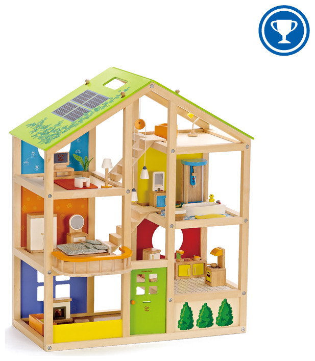 There are as many ways to play with this house as there families in the world. Six rooms, moveable stairs, and a reversible winter/summer-themed, solar-paneled roof inspire year-round activities. Includes four room sets: Master Bedroom, Family Bathroom, Media Room and Kitchen. www.youtube-nocookie.com/embed/QdHjYag8fm4
