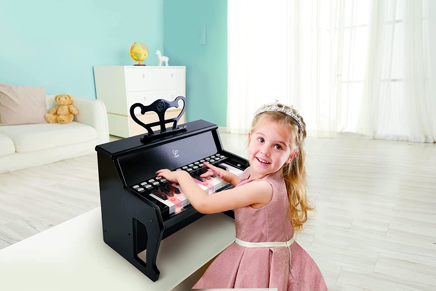This beautiful, electric piano with 25 light-up keys is a fantastic way to introduce children aged three and up to the wonders of the piano and music in general.