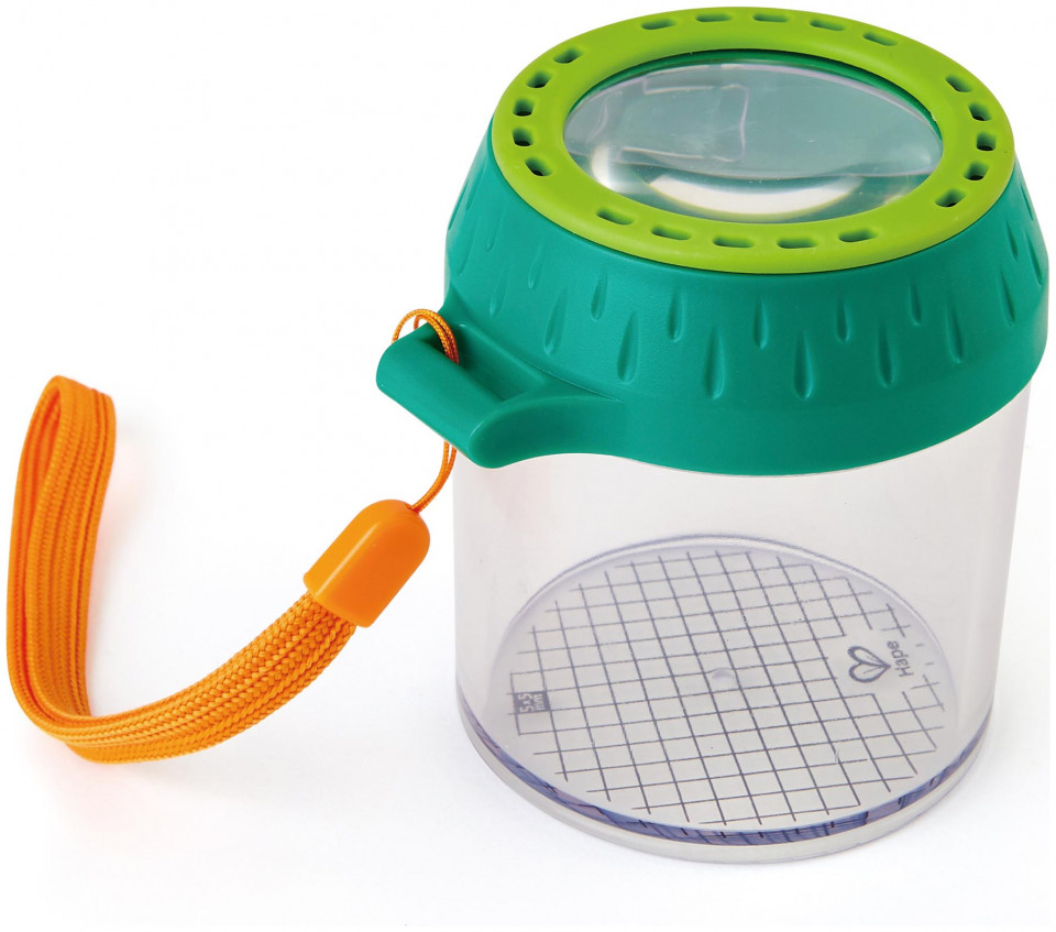 Catch and study insects with this scientific bug jar! Features a 4x magnifying glass lid, measuring grid and air holes so your bugs can breathe. Made with sustainable plant-based plastic (non-oil-based).
