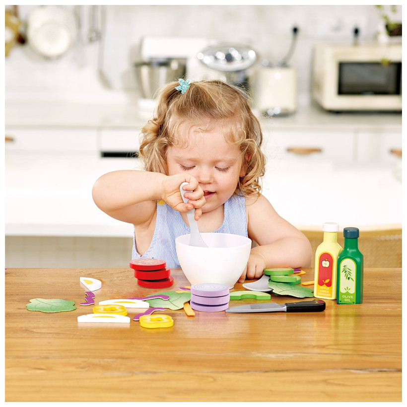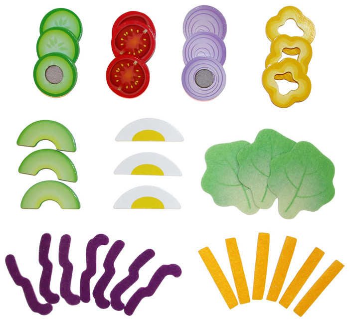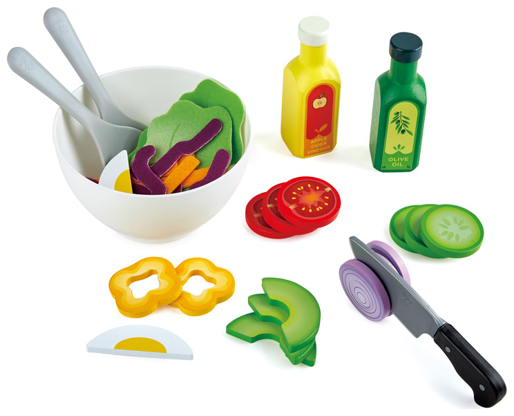 Prepare a healthy meal with this fantastic salad playset! Includes pieces of egg, avocado, cucumber, tomato, onion and other vegetables which can be sliced using the realistic play knife. Also includes one salad bowl, one spoon and fork and two bottles of dressing! www.youtube-nocookie.com/embed/6Zhu21pxAiU