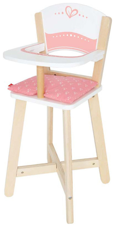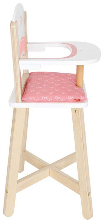 This mini highchair encourages dolls to sit up straight and eat their food.