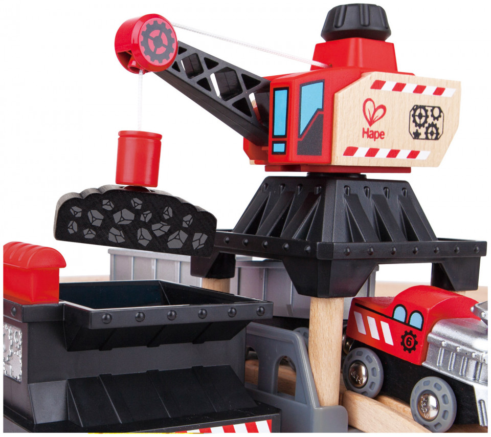 Use the magnetic crane to keep this mining rail set running smoothly! Pick up loads of ore from the back of the truck. Then drop them into the loader and onto the waiting train