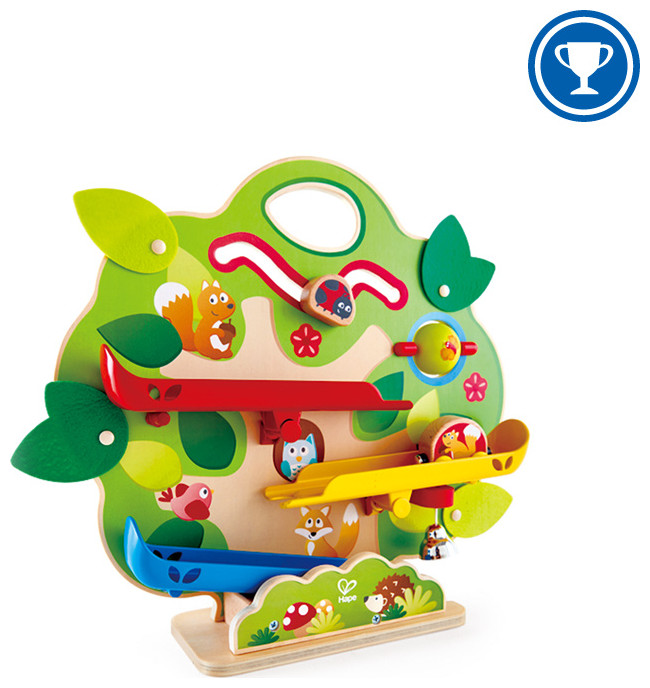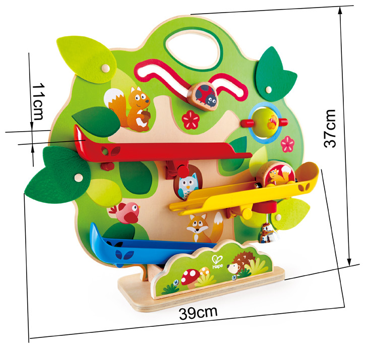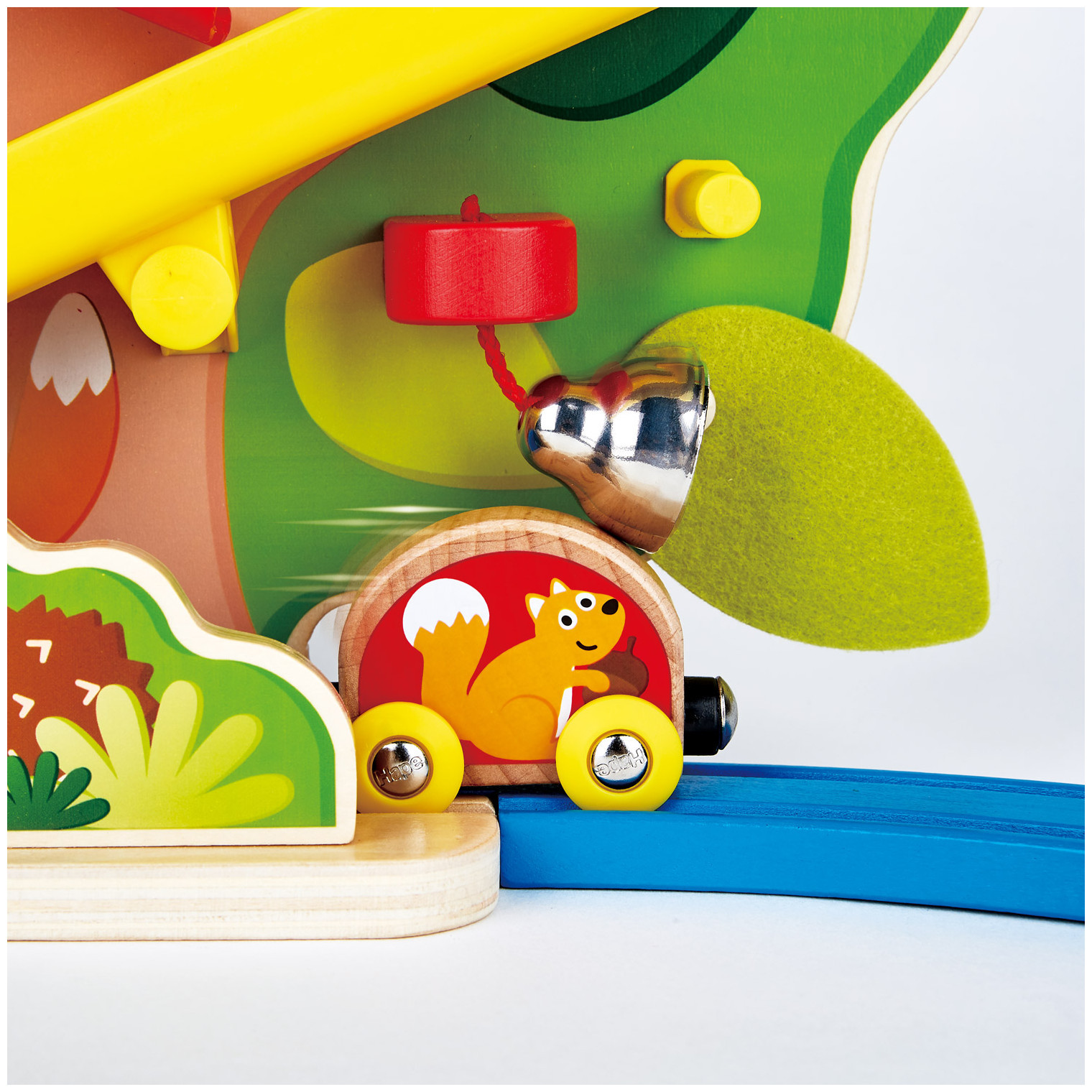 This squirrel is just nuts about sliding down! Place him at the top of the tree and watch roll down the different ramps and ring the bell at the bottom. Then explore the other fun features.