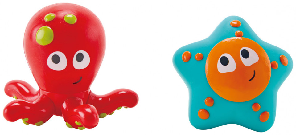 This cute octopus and starfish have a cheeky secret! If you fill them up with water and squeeze them they will shoot out water. Brings splashy fun to bath time! www.youtube-nocookie.com/embed/BtvCqIRcSX8
