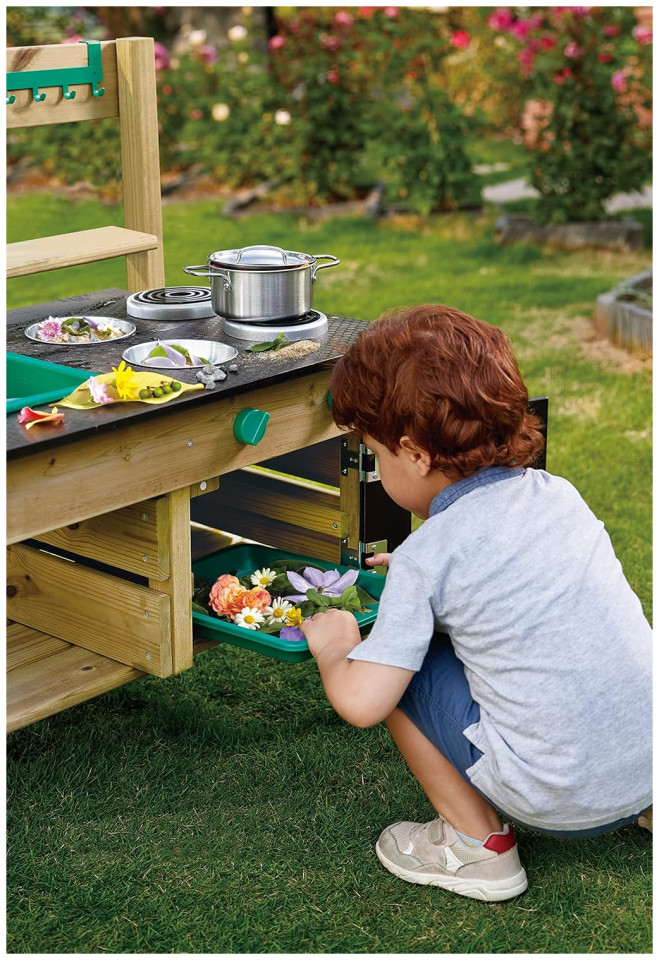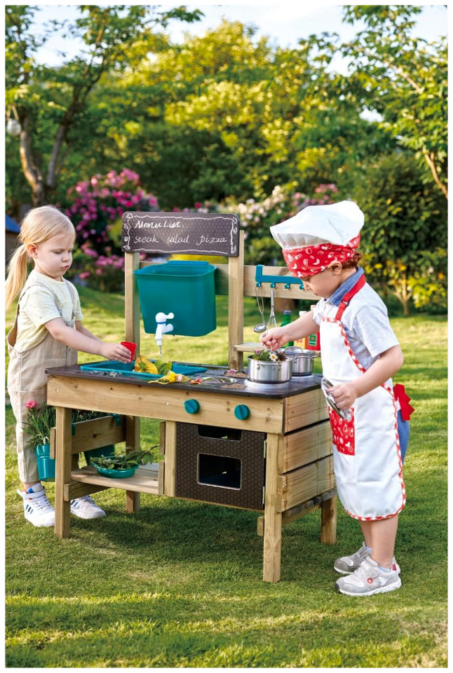 GET OUTSIDE AND HAVE FUN: Enjoy the sunshine and fresh air with your little one while they put a menu on the blackboard, plant some flowers or veggies in the pots and pretend to cook food with leaves, rocks and mud