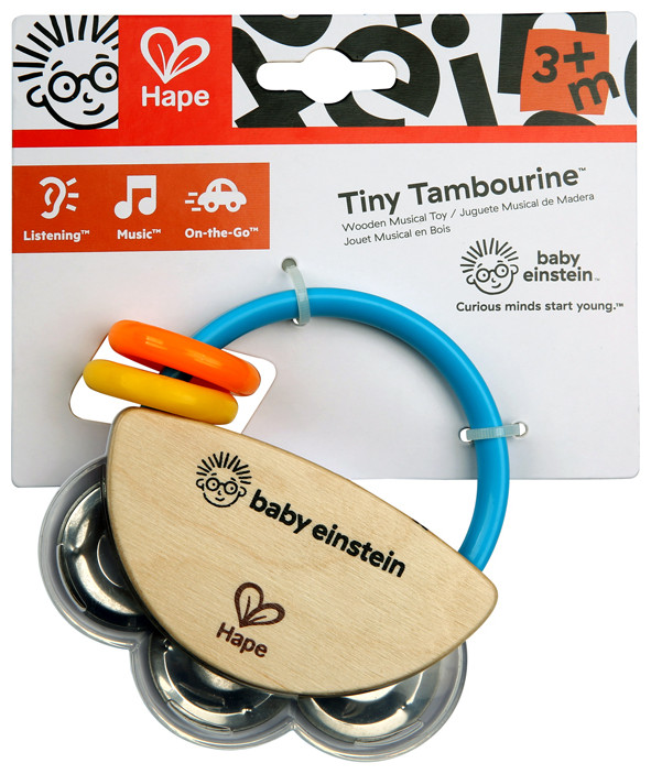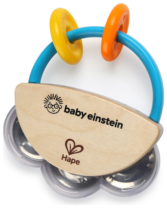 Let your littlest love start his own one-man marching band with Baby Einstein’s Tiny Tambourine. A different take on the traditional rattle, this wood toy will be baby’s first and favorite instrument. This musical toy will encourage development of fine motor skills as baby holds on tight and rattles out new jingles.