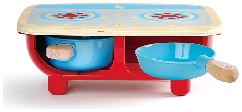 Prepare delicious meals for your family and friends! This fun wooden stove comes with one pot with lid, one frying pan, one spoon and one spatula for you to cook with. Features knobs which click cutely when turned. Store your pot and pan in the spaces behind the hob when you're done. www.youtube-nocookie.com/embed/Tp4roIUERM4