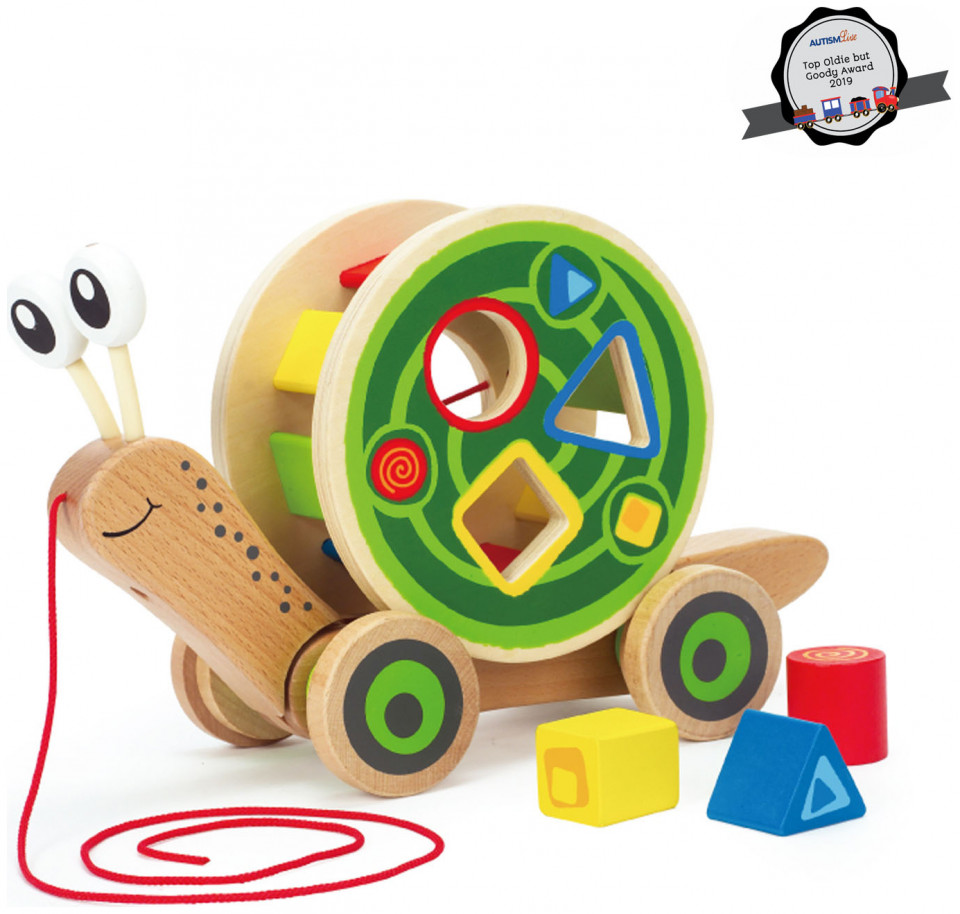 This multi-tasking snail totes a shell full of wooden blocks as he tags along behind you. Lighten the load by removing the colorful shape sorter, and he’s ready to roll alone. www.youtube-nocookie.com/embed//N8_f2InwSfU