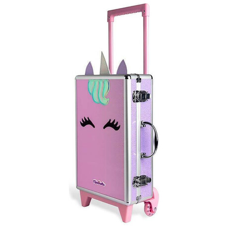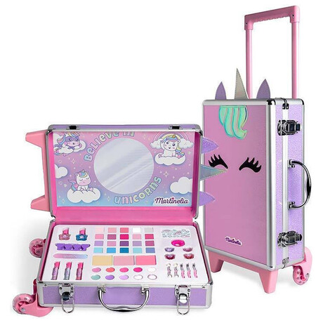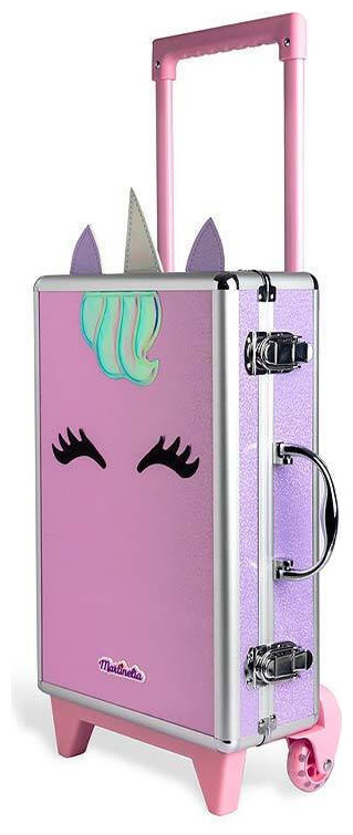 Η βαλίτσα μακιγιάζ του μικρού μονόκερου της Martinelia διαθέτει ροδάκια και χερούλι, ιδανική για ταξίδια στον κόσμο της ομορφιάς.