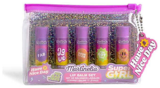 Το παιδικό σετ Martinelia Super Girl Lip Balm 5pcs Set περιλαμβάνει 5 lip gloss σε μορφή στικ με διαφορετικές γεύσεις. Έρχεται σε υπέροχο διάφανο νεσεσέρ. Είναι δερματολογικά ελεγμένα.