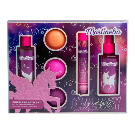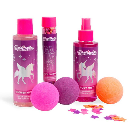 Το Martinelia Galaxy Dreams Cosmic Bath Delight είναι ένα παιδικό σετ μπάνιου που μετατρέπει την καθημερινή ρουτίνα σε μια μαγική εμπειρία. Με θέμα εμπνευσμένο από το σύμπαν και τα αστέρια, αυτό το σετ προσφέρει αφρόλουτρο και προϊόντα μπάνιου που φροντίζουν απαλά το δέρμα, ενώ παράλληλα κάνουν το μπάνιο διασκεδαστικό και πολύχρωμο.