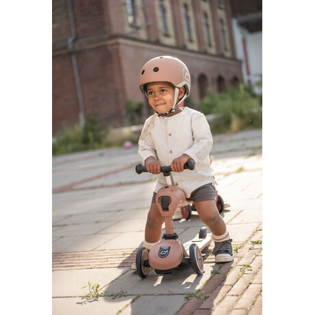 Το παιδικό κράνος Scoot & Ride XXS–S Mocha έχει σχεδιαστεί για να προσφέρει ασφάλεια και άνεση σε κάθε βόλτα. Χάρη στον περιστροφικό μηχανισμό ρύθμισης στο πίσω μέρος, προσαρμόζεται ιδανικά στο κεφάλι του παιδιού, εξασφαλίζοντας σταθερότητα χωρίς πίεση.