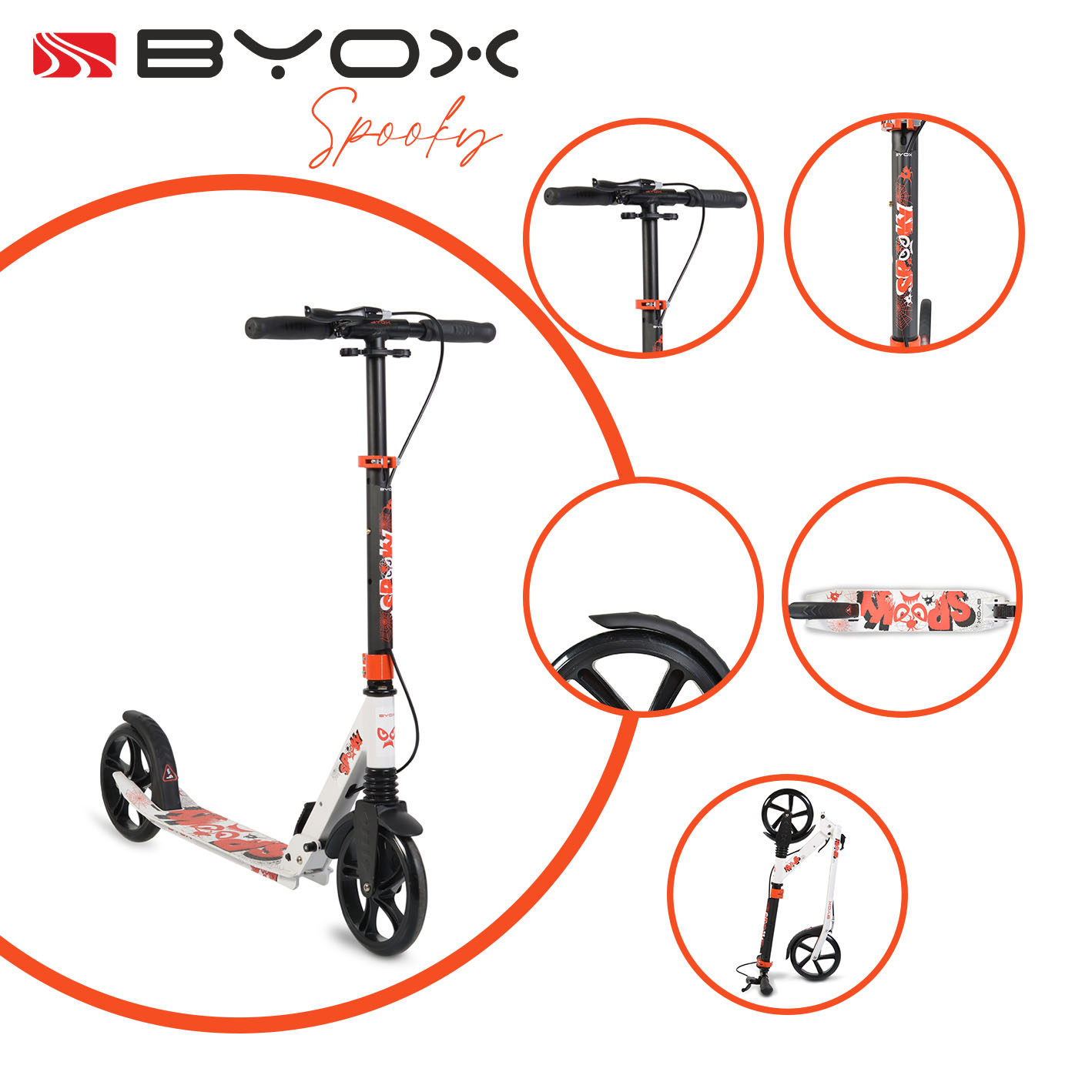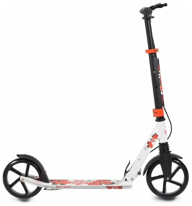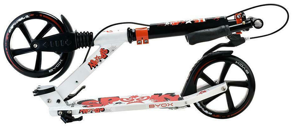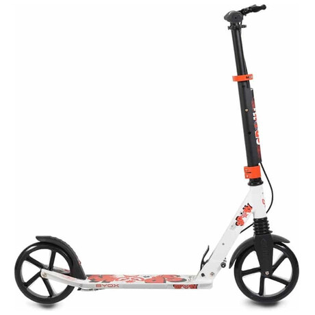 Αναδιπλούμενο πατίνι αλουμινίου με μπροστινή ανάρτηση, αντιολισθητική βάση και ρυθμιζόμενο ύψος 3 σημείων στο τιμόνι. Διαθέτει μαλακές λαβές, πλαϊνό ορθοστάτη και φρένο τόσο στον πίσω τροχό όσο και στην δεξιά χειρολαβή. Κατάλληλο για παιδιά ηλικίας από 8 ετών.
