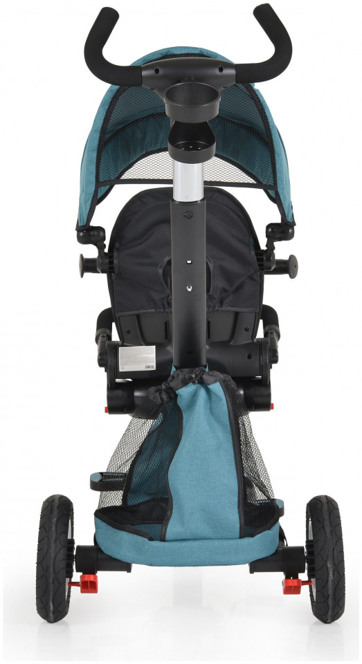 Features: Adjustable seat •Telescopic handle •Rotating seat 360° •Removable upholstery •Removable handle •Adjustable backrest •5-point seat belt •Cup holder •Footrest •Soft upholstery •Front accessory basket •Bell •Pedal lock •Adjustable handle