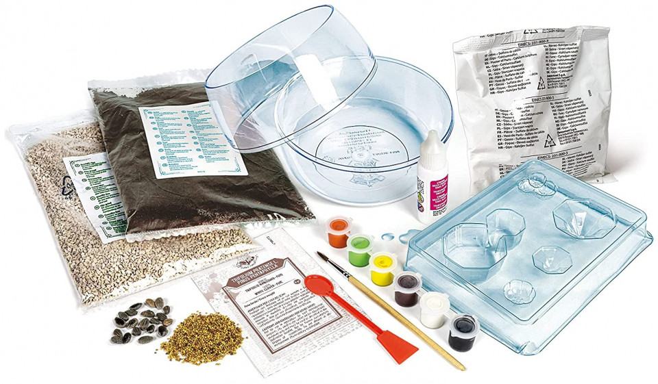 Includes plaster, moulds and gouache to create Hagrids fantastic hut with typical pumpkins, children can have fun using seeds, peat, soil, sand and stones to create a natural landscape full of plants around Hogwarts.