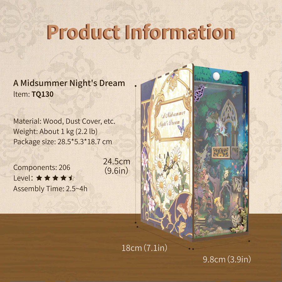 Ζήστε τη μαγεία ενός λογοτεχνικού κόσμου με το 3D DIY Book Nook Kit "A Midsummer Night's Dream" από την Tonecheer. Δημιουργήστε μια ονειρική μινιατούρα με φαντασμαγορικές λεπτομέρειες και ενσωματωμένο LED φωτισμό που ζωντανεύει κάθε σκηνή.