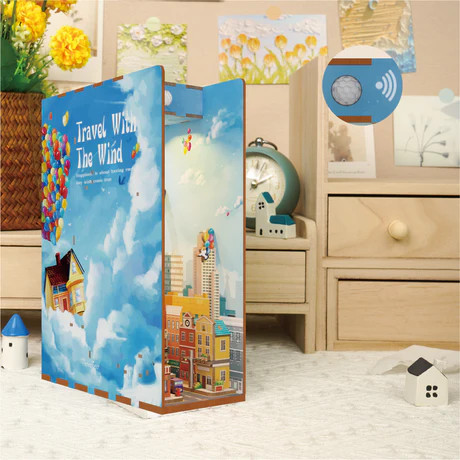 Ανακαλύψτε την αίσθηση της ελευθερίας και της περιπέτειας με το 3D DIY Book Nook Kit "Travel with the Wind" από την Tonecheer. Δημιουργήστε μια μινιατούρα που αποτυπώνει ένα ατμοσφαιρικό ταξίδι με λεπτομέρειες και ενσωματωμένο LED φωτισμό.