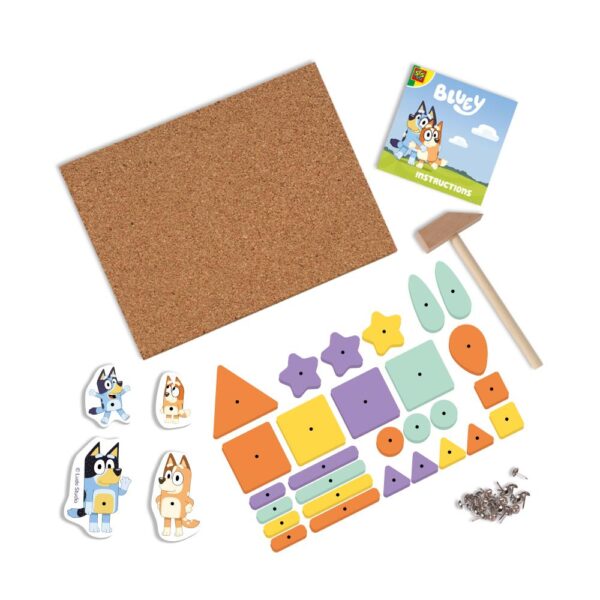 Το Bluey Hammer Tic της SES Creative είναι ένα δημιουργικό παιχνίδι κατασκευής εμπνευσμένο από την αγαπημένη παιδική σειρά Bluey. Τα παιδιά μπορούν να δημιουργήσουν τις δικές τους εικόνες και σχέδια χρησιμοποιώντας πολύχρωμα ξύλινα σχήματα, ειδικές φιγούρες Bluey και ένα πραγματικό μικρό ξύλινο σφυράκι. Τοποθετώντας τα κομμάτια πάνω στον φελλό και στερεώνοντάς τα με καρφάκια, τα παιδιά εξασκούν τις πρώτες κατασκευαστικές τους δεξιότητες ενώ διασκεδάζουν.