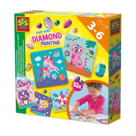 Το σετ Giant Gems – Diamond Painting της SES Creative επιτρέπει στα παιδιά να δημιουργήσουν εντυπωσιακά και πολύχρωμα έργα τέχνης χρησιμοποιώντας μεγάλα διακοσμητικά “διαμάντια”. Τα παιδιά τοποθετούν τα κομμάτια πάνω σε προκαθορισμένα σχέδια, αναπτύσσοντας τη φαντασία, την ακρίβεια και τις καλλιτεχνικές τους δεξιότητες μέσα από διασκεδαστική και εκπαιδευτική απασχόληση.