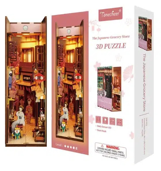 Ζήστε την εμπειρία ενός παραδοσιακού ιαπωνικού παντοπωλείου μέσα από ένα εντυπωσιακό 3D DIY Book Nook Kit από την Tonecheer. Με 134 κομμάτια και ενσωματωμένο LED φωτισμό, το σετ αυτό συνδυάζει την τέχνη της μινιατούρας με τη χαλάρωση της δημιουργίας. Ιδανικό για συλλέκτες, λάτρεις των παζλ και όσους αγαπούν τις λεπτομέρειες.